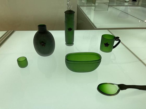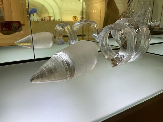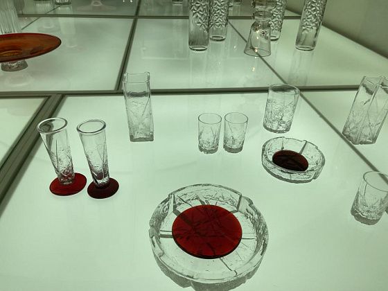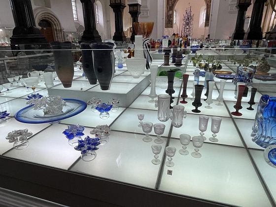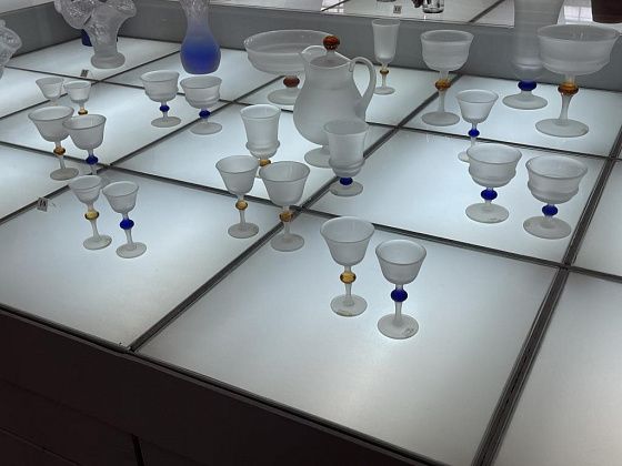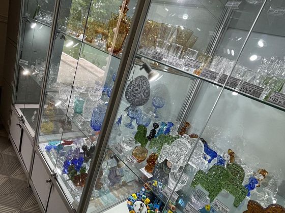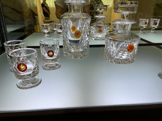 В самом музее представлены две экспозиции хрусталя и насчитывается более 12 тысяч предметов. В малом зале, который расположен в подвале, выставка постоянно меняется. Во время нашего приезда она посвящалась 80-летию Победы. В большом зале можно увидеть этапы становления хрустального производства. В витринах стоят толстостенные штофы, созданные десятилетия назад, далее - наборы хрусталя, которые были во многих советских семьях и современные, невесомые, казалось бы, предметы.