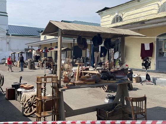 В торговых рядах много лет назад снимался фильм “Жестокий романс”. Местные жители показали пятачок, на котором Михалкова встречали цыгане. Торговые ряды прекрасно выглядят, они сохранили облик прежних лет и поэтому сюда съезжаются “киношнки” и снимают исторические фильмы. Нам довелось посмотреть процесс съемки военного детектива. В тот день торговые ряды “превратились” в рынок 40-х годов. На прилавках лежала снедь, “продавались” вещи. Актеры облачились в одежду той эпохи. У столбов стояла съемочная бригада, над площадью раздавались различные команды режиссера и его помощников.