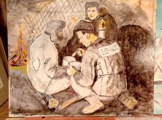 Североуралец Сергей Олифир около полутора лет назад написал три картины на основе воспоминаний о лагере заключенных, который располагался на Втором Северном и был закрыт в 1956 году. На одной из картин трое заключенных в фуфайках, валенках и ушанках что-то едят, на другой - вышка лагерного вертухая на фоне заснеженного шахтного отвала, на третьей - сморщенная нищая старуха на костылях с протянутой рукой, а за ней - символика “Единой России”.