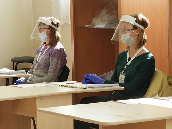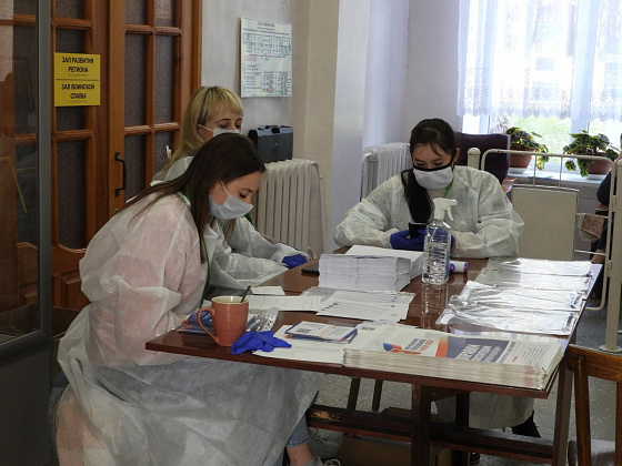 К десяти утра на УИК №1945, что расположена в здании краеведческого музея проголосовали чуть более десяти человек. Члены комиссии в защитных масках, экранах, перчатках - работают, строго соблюдая правила. Избирателей не подпускают ближе обозначенного расстояния – оно указано чертой на полу, паспорта в руки не берут, просят людей сначала показать страницу с пропиской, затем основную. Дают расписаться, выдают бюллетень. Очень часто обрабатывают поверхности столов и кабинки для голосования антисептиком, также обрабатывают дверные ручки, урну.