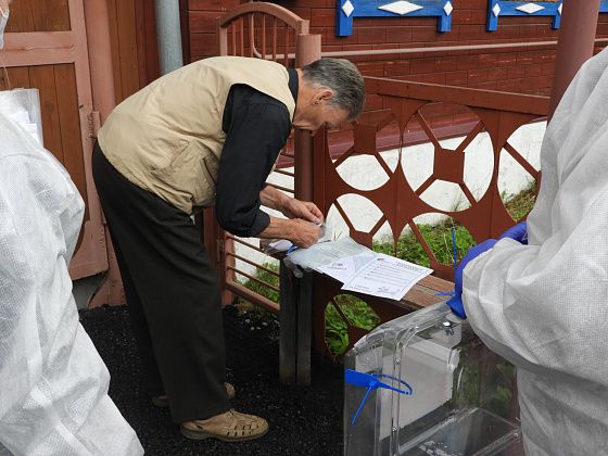 Стоит отметить, что члены УИК ответственно подходят к своей работе: обходят каждый адрес, подолгу пытаются достучаться до адресата, а если это удается, то внятно объясняют, что нужно сделать человеку и в какой последовательности. Они также следят за безопасностью – обрабатывают антисептиком свои руки, дверные ручки, переносной ящик и даже свою одежду. Один человек отказался проголосовать: