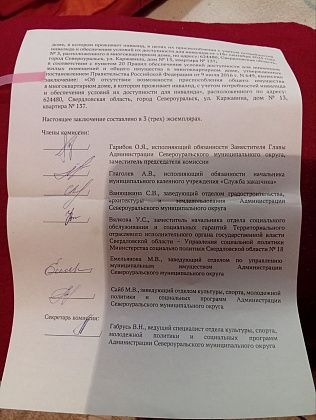 Специалисты администрации отреагировали - пришли домой к Светлане Владимировне, обследовали условия проживания, создали комиссию, которая установила, что для возможности выезда инвалида на улицу необходимо провести ряд мероприятий. В том числе, приобрести и предоставить Светлане Куражовой кресло-коляску с электроприводом для безопасного подъема и спуска по лестницам - это отражено в заключении комиссии за подписью шестерых специалистов администрации от 18 сентября 2025 года.