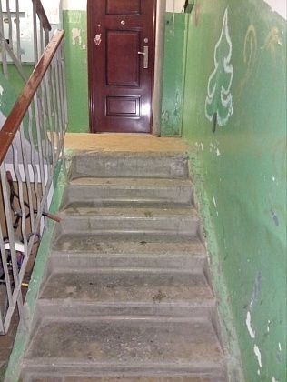 Были работники управляющей компании “Союз”, сделали бетонную стяжку в подъезде между дверями, чтобы пол немного приподнялся. Предложили пандус нестационарный, который нужно после использования заносить домой.