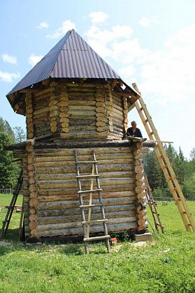 Примечательна здешняя землянка - низенький домик с трубой на самом берегу Ваграна, здесь обычно ночуют дети. А еще - строящаяся часовенка, которую в ближайшем будущем освятят. Возводит ее скромный немногословный мужчина по имени Александр, один справляется. Бывают же умельцы…