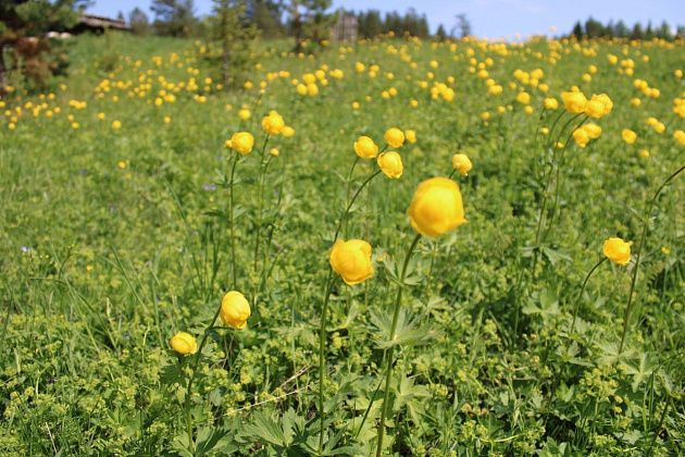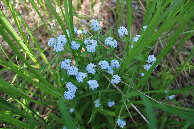 Прильнули все к трехсотлетней сосне, такой мощной в обхвате, что и втроем не обнять, устроили фотосессию. Полюбовались желтизной купавковых полей. Среди прочих цветов попался один, сильно напомнивший хосту. Как пояснила экскурсовод, это чемерица. Невероятно красивой показалась пышно цветущая незабудка, в лесу она более разлапистая и многоцветная. Порадовали и дикие анютки, точь такие, как садовые, только с меленькими цветочками.