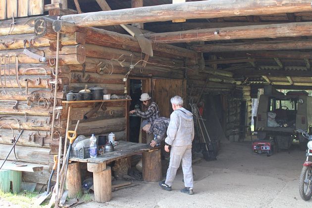 Стены главного дома базы отдыха увешаны всевозможными орудиями труда ранешних обитателей Баронского - лопаты, кирки, топорики и большие топоры, приспособления для мытья золота и прочая полезная в хозяйстве всячина. Часть металлических изделий изготовлена на заводах, часть - кузнецами-частниками.