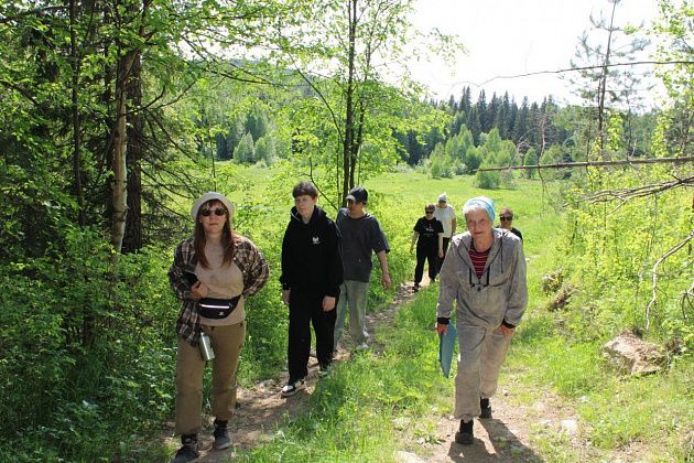 Вахтовку ждали у Наташиного дома на Южном. К моему приходу на место встречи на полянке уже ожидала компания, к которой мне предстояло присоединиться. Как оказалось, три девушки были из Краснотурьинска (одна с племянником-подростком и его другом), одна - из Карпинска. Наталья Ивановна уже начала познавательную лекцию о месте, куда нам вот-вот нужно было выдвигаться. Погода - жара, солнце слепит с самого утра, осадков не намечается.