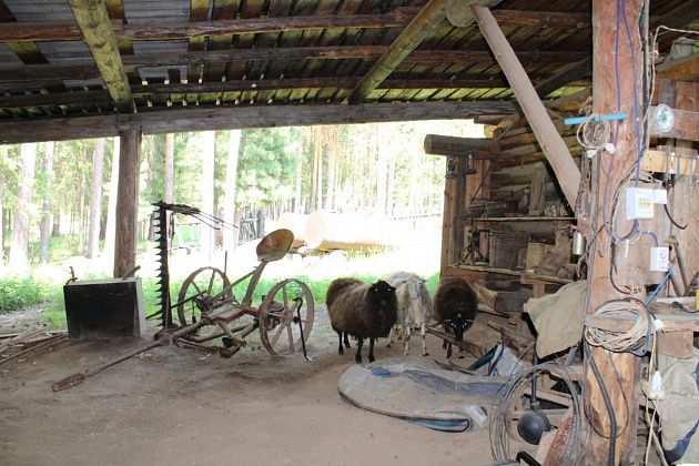 Зарядившись вкусным перекусом, пошли обследовать так называемое зимовье. Веселым беканьем встретили четверо барашков, смешно бегающих друг за другом, будто дразнясь. Дружным захлебывающимся лаем - две местных собаки, черная и светлая, будки которых располагаются по обе стороны подворья. Всех без исключения впечатлил местный житель по имени Михаил, присматривающий за хозяйством. Харизматичный такой дядька, ему 67, совсем еще не старик, но все зовут его Дедом - ходит он сильно сгорбившись и опираясь на палку, но шустро, и все время по-доброму ворча.