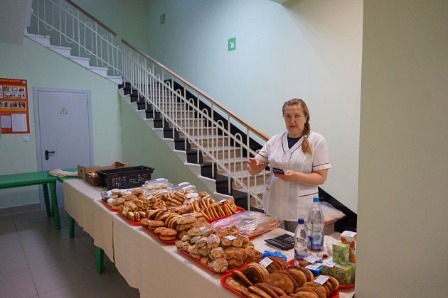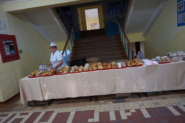 Для молодых приготовлены специальные дипломы и шоколад. А для всех жителей поселка - концертная программа, которая начнется в 12 часов. А еще на всех участках работают буфеты - столы с выпечкой и всякими вкусняшками. Пахнет очень вкусно!