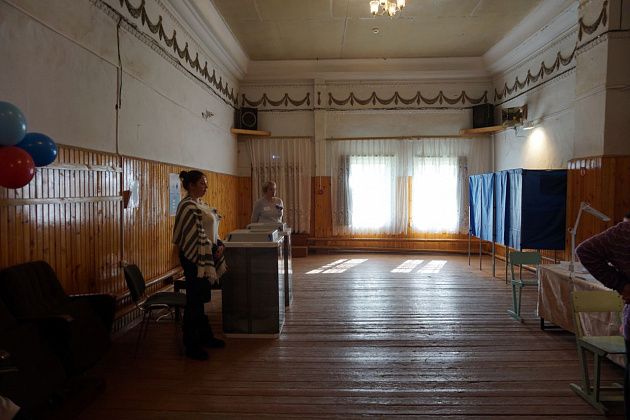 Здесь участок располагается в школе. На спортплощадке резвится детвора, на избирательном участке - народу совсем мало. Оно и понятно: 440 избирателей на весь поселок. К 14 часам проголосовало 73 человека.