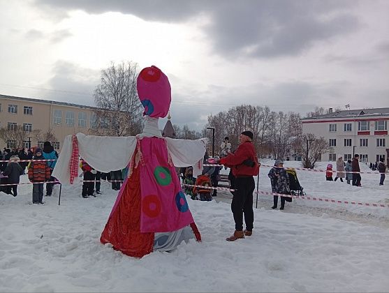 От многих слышала: “А где столб? Спонсоров на призы не нашлось или в лесу деревья закончились?” Как оказалось, традиционного состязания по лазанию на столб североуральцы лишились по причине антитеррористических ограничений - по новым требованиям, место массового пребывания людей должно быть обнесено забором (что и было сделано), а забор мешает проезду на площадь техники. В общем, одно любимое зрелище сменилось другим - все глазели и снимали на телефоны сжигание чучела, даже двух - одного побольше, второго поменьше размером. Чучела предварительно облили горючей жидкостью из пластиковой бутылки и подожгли. Народ комментировал: “Бабку с ребенком жгут”.