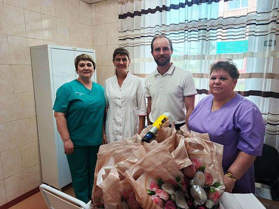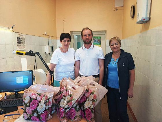 Артем Шарапо объезжает здравпункты, поздравляет с наступающим профессиональным праздником и вручает подарки.