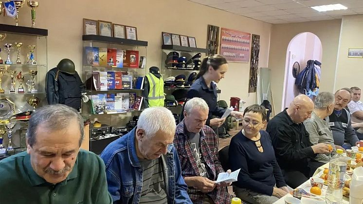 Посетила праздничное мероприятие инспектор пропаганды безопасности дорожного движения Наталья Кузьмина. Поздравив с праздником, она напомнила ветеранам о важности соблюдения правил дорожного движения, особенно водителям старшего возраста, и вручила тематические памятки.