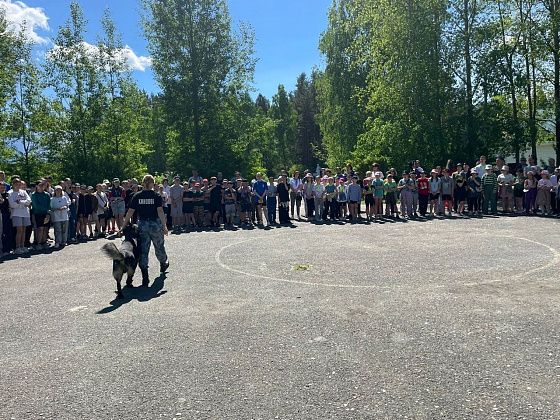Правоохранители привезли с собой специальные средства полицейских, учебные пистолеты Макарова и автомат Калашникова. Мальчишки и девчонки с удовольствием примеряли бронежилет и каску. Разбирали и собирали оружие. Особенный восторг у ребят вызвал служебный пес по кличке Кошмар, который очаровал всех ребят и взрослых. Четвероногий друг послушно выполнял все команды кинолога.