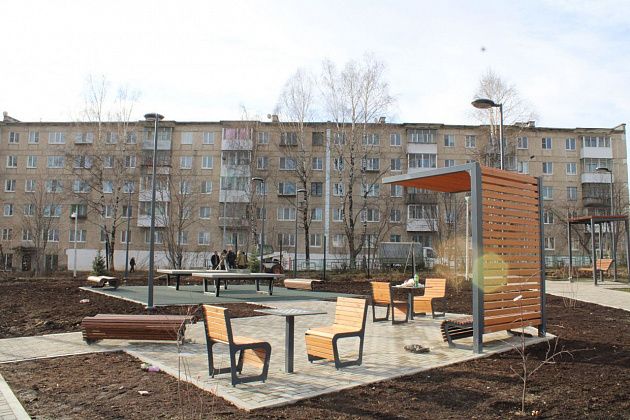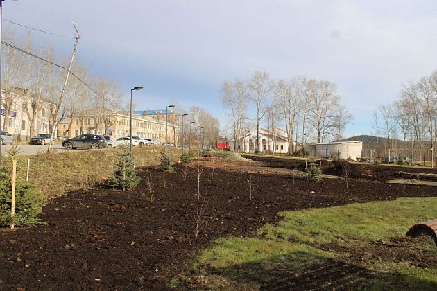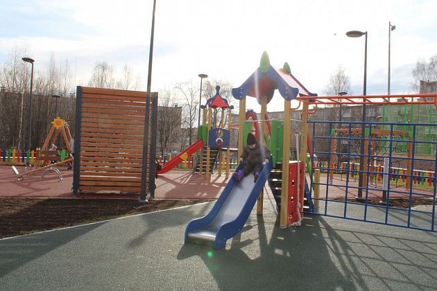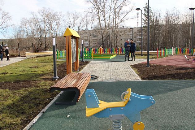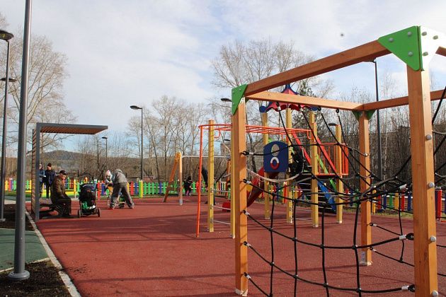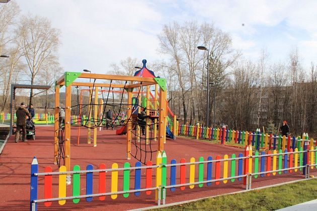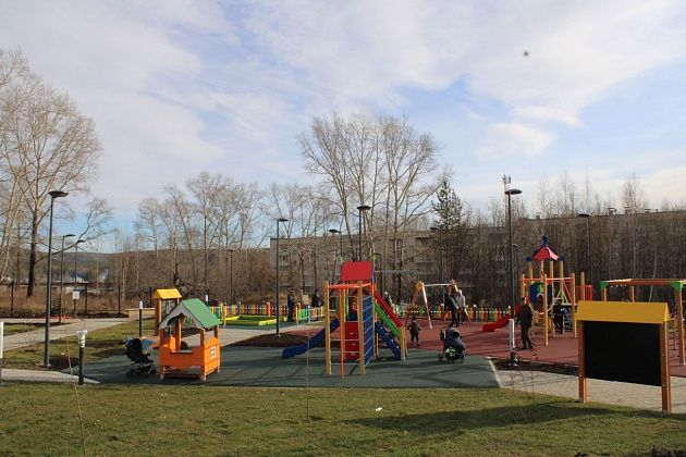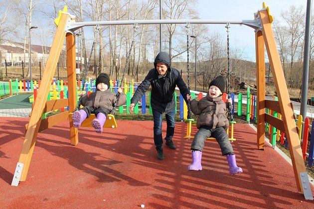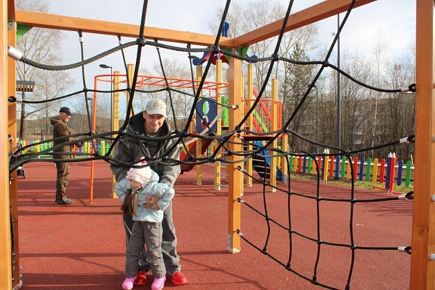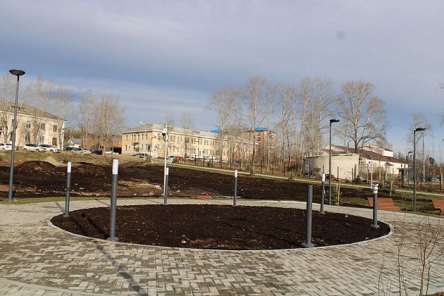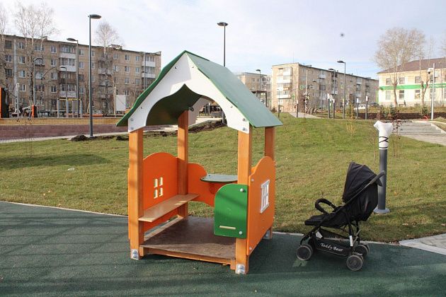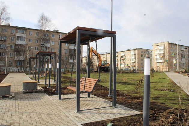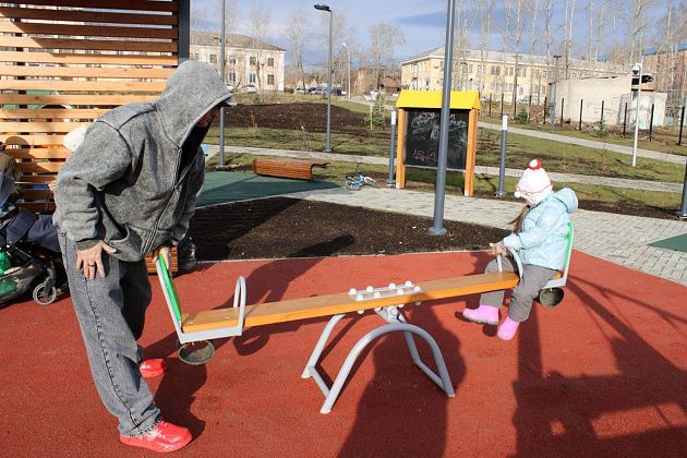 Сквер “Танцевальный” почти готов. На детских площадках папы с малышами