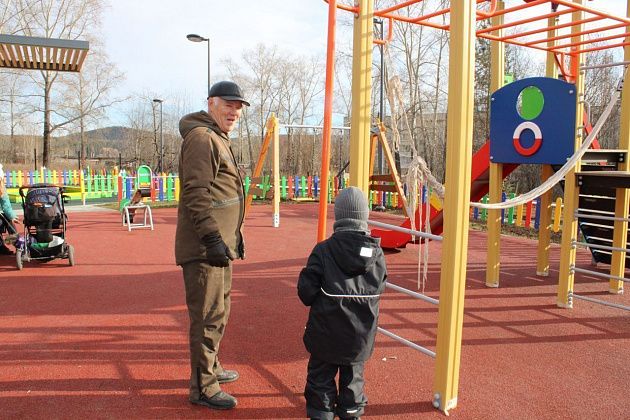 - У нас дом на Ватутина, 22, мы в окошко за всем наблюдаем, - говорит Татьяна Григорьевна, они гуляют по парку с мужем, он после инсульта, - хорошо сделали, и качельки, и лавочки, и дорожки. И пенсионеры гуляют, и молодежь. Нам все нравится.