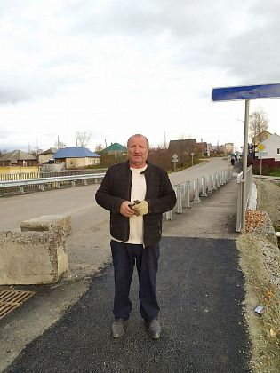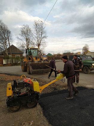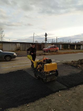 Вчера асфальт уложили возле перехода, от перехода к самому мосту, справа от моста и вверх до пересечения с перпендикулярной улицей. Левую сторону планируют доделать сегодня, 12 октября. А арсенале бригады - экскаватор и компактный каток - им вручную закатывают полотно тротуара. Такие катки удобно использовать при асфальтировании узких дорожек.
