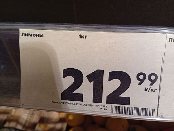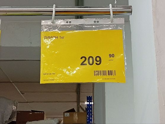 Лимоны, “Пятерочка” - 212 рублей, “Магнит” - 199 рублей, “Доброцен” - 209 рублей.
