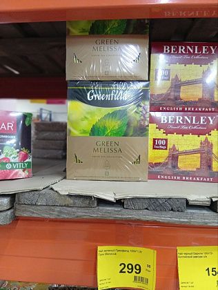 Чай “Гринфилд” - “Пятерочка” - 329 рублей, “Магнит” - 329 рублей, “Доброцен” - 309 рублей.