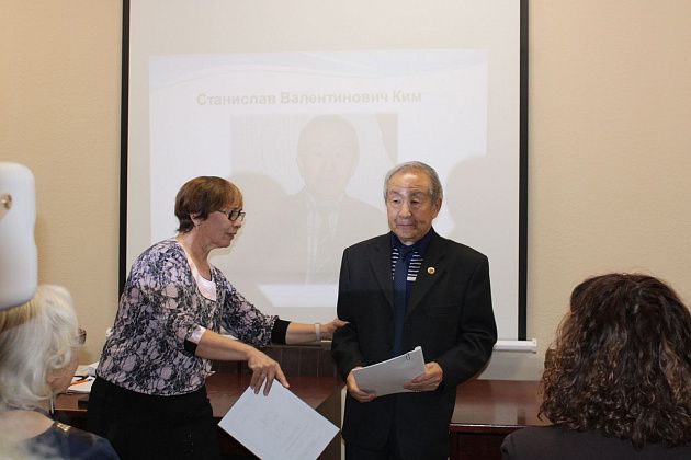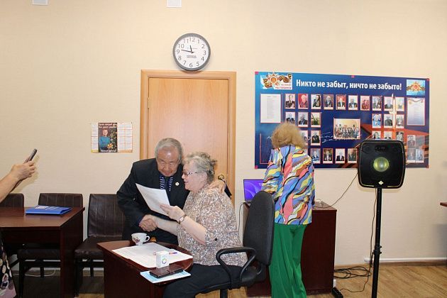 Председатель совета ветеранов Станислав Ким вручил поэтам и писателям благодарственные письма, праздничное настроение участникам презентации подарили женщины из ансамбля “Рябинушка”.
