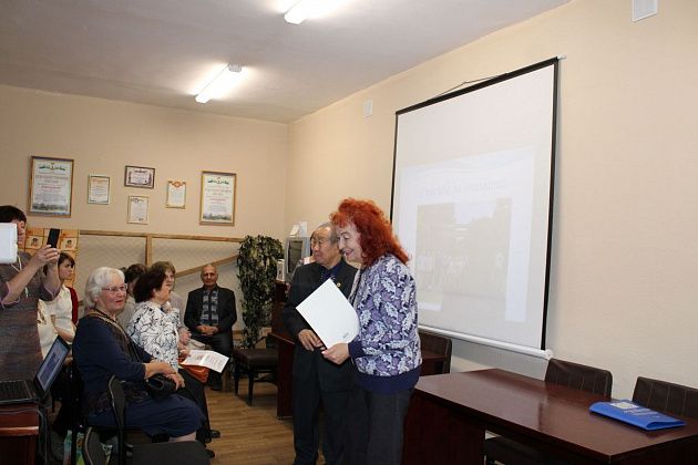 Благодарность от городского совета ветеранов вручили также Татьяне Харохориной, без которой презентованный сборник никогда бы не увидел свет.