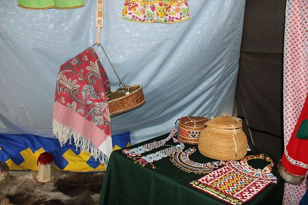 Знакомлюсь с одной из мастериц, выясняется, что мы коллеги. Тамара Мерова - представитель народа манси из ХМАО. Родилась в селе Саранпауль, Березовского района. А сейчас работает журналистом в окружной национальной газете “Луима Сэрипос”, в переводе на русский - северная заря.